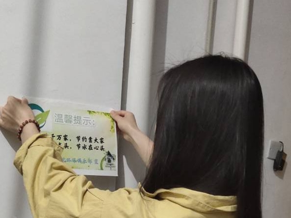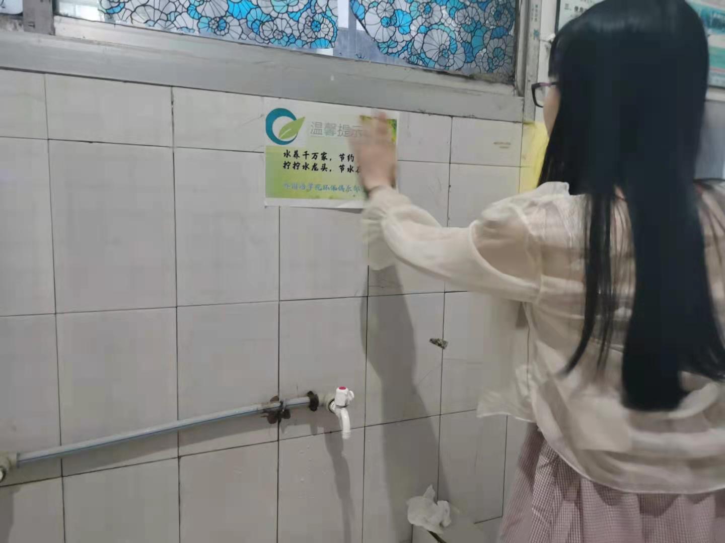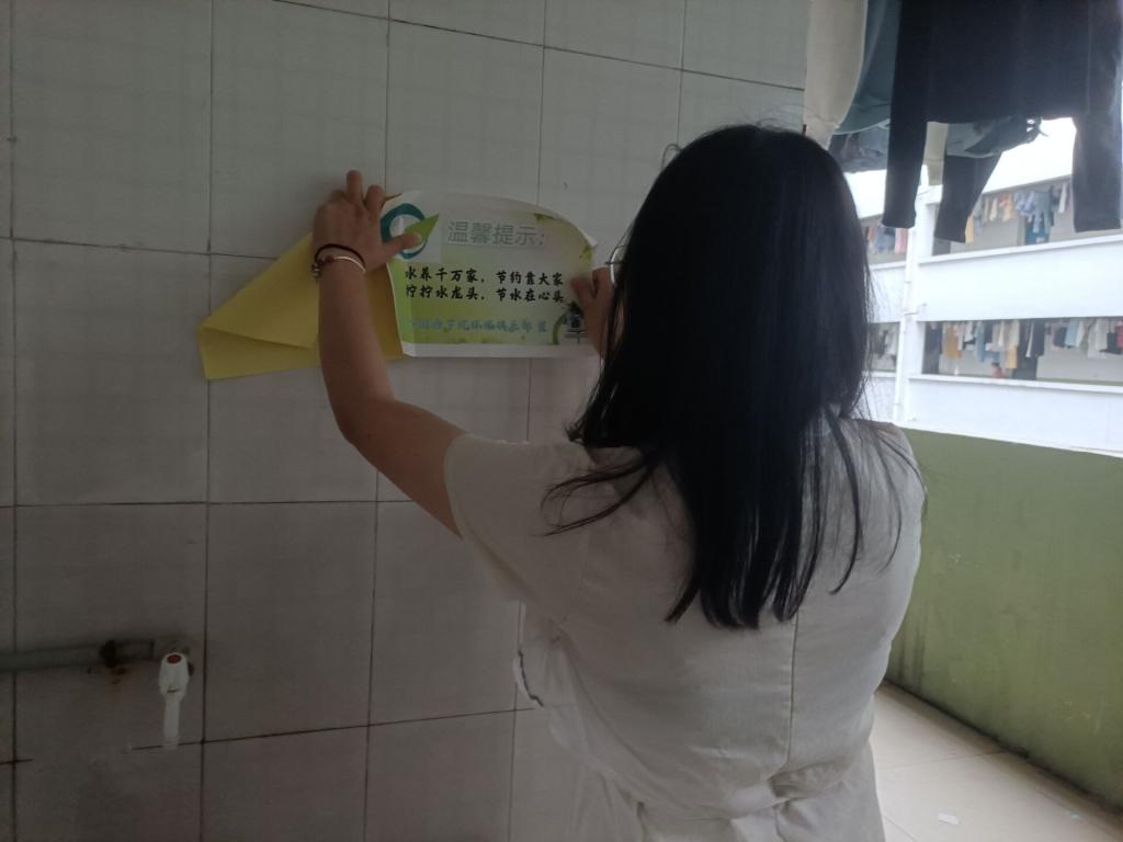 本次活动主要是由环保俱乐部成员在学校的宿舍里组织展开。活动中,环保俱乐部成员通过张贴标语的方式让大家了解节约用水在生活中的重要性。同学们兴致高昂,不怕累,认真仔细的在宿舍楼道内张贴节水标语。“水养千万家,节约靠大家;拧拧水龙头,节水在心头”........这些精彩而富有内涵的宣传标语,形成了的一道道靓丽风景,潜移默化的影响着同学们成为节约用水的践行者、传播者。