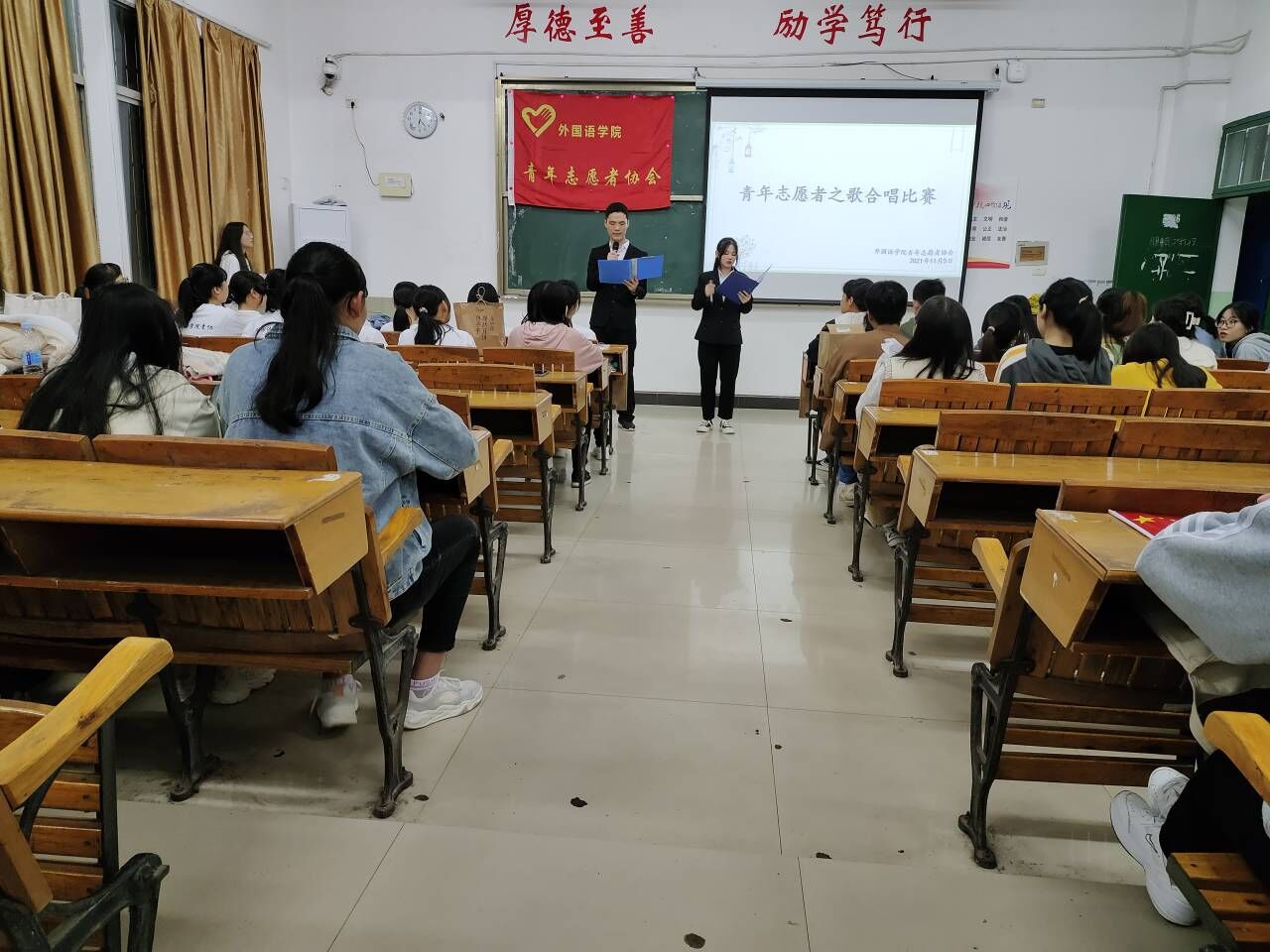 为了更好地发扬“奉献,互助,友爱,进步”的青年志愿者精神,增强小伙伴们的合作意识,beats365亚洲版官网青年志愿者协会于2021年11月5日18:20在英华楼3306教室举办“青年志愿者之歌合唱比赛”活动,参与本次活动的成员有beats365亚洲版官网青年志愿者协会部分19级理事会成员,20级理事会成员和21级青协成员。