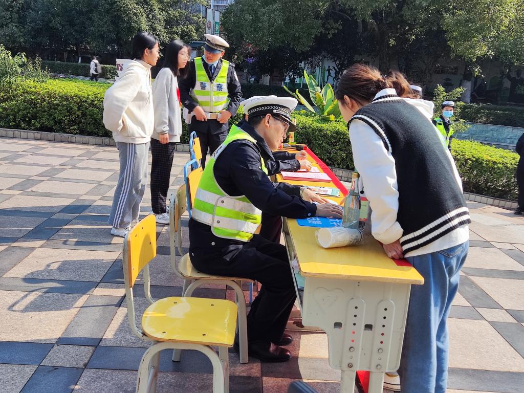为了进一步提高广大师生的交通安全意识和交通法制观念,使交通安全观念更加深入人心,预防与减少道路交通事故的发生,beats365亚洲版官网青年志愿者协会于2021年11月29日12:15在中心小广场举办了“交通安全宣讲”活动,同时邀请了安源交警大队的警官们为同学们进行安全知识宣讲,参加这次活动的有beats365亚洲版官网员工党支部成员,外国语公司青协20级理事会成员,以及21级青协成员。