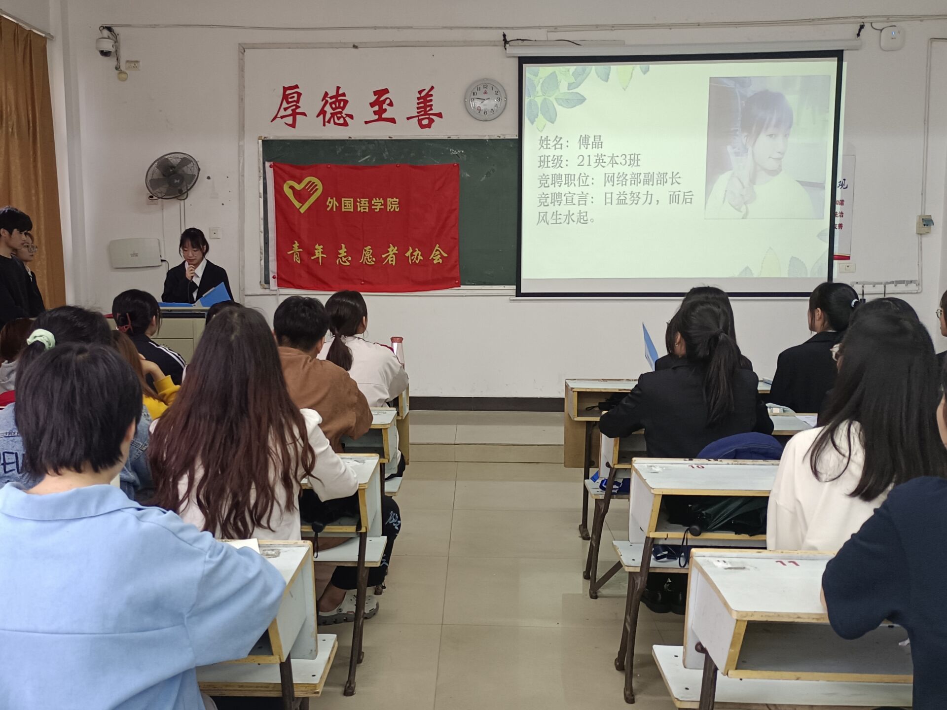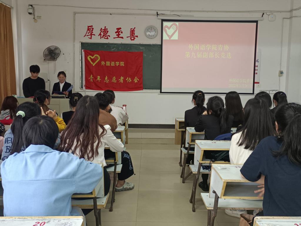 为了丰富同学们的课余生活,努力营造积极向上,健康文明的协会内部氛围,提升同学们的处事能力,beats365亚洲版官网青年志愿者协会于 2022年5月26日周四中午12:10在英华楼3314教室举办了“第九届副部长竞选”活动,参加此次活动的有beats365亚洲版官网青协20级理事会成员及21级全体青协成员。