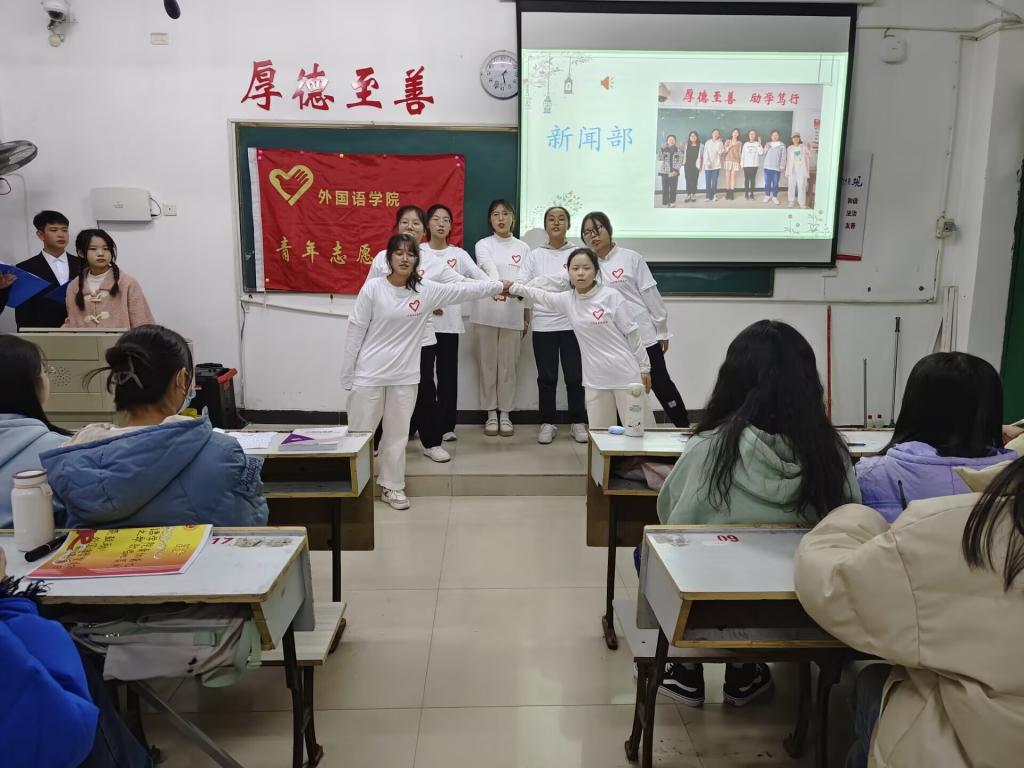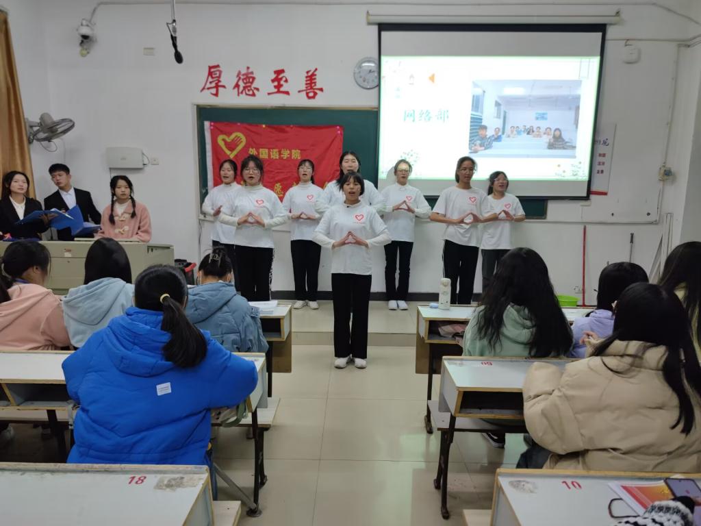 活动开始前期,各部门部长带领部门成员进行了较长时间的合唱排练工作,为此次活动做了充分的准备。11月30日,活动正式拉开帷幕。活动开始第一项,由主持人吴朝松和黄静怡宣布本次比赛正式开始。第二项,各部门依次上台展示。首先由组织部小伙伴带来嘹亮激昂的歌唱,这点燃了现场的气氛。紧接着是社会实践部小伙伴整齐划一且赏心悦目的手语舞。社会实践部结束后是网络部,她们用走心的站位和造型以及紧跟潮流且大气自信的口号表达出了对青协深沉的热爱。随后是新闻部的小伙伴,她们坚定的目光充满着力量,手上的红心与红旗也格外耀眼。紧接着是办公室的小伙伴,她们诚恳而有力的誓词让现场观众的心与之共鸣。接下来出场的是文宣部,文宣部小伙伴笑容满面地在舞台上大放光彩。最后,展示环节在人力资源部小伙伴铿锵有力的歌喉以及现场热烈的掌声中收尾。除了各部门上台展示,每三场表演之间还穿插着游戏环节。主持人和评委先行示范“你叫我做我偏不做”,引得现场欢声雷动的同时也带动了青协成员踊跃上前挑战,“听歌识曲”更是展现了大家丰厚的音乐修养。第三项,由会长余钟晓发表讲话。会长对各部门成员在台前精彩的演出效果以及幕后刻苦且持之以恒的练习过程予以肯定,同时告知大家青协将会在疫情允许的时机下尽可能多地举办活动,一方面丰富校园生活,更重要的是让大家更深刻地感受到来自志愿服务大家庭的温暖。第四项,由主持人公布获奖名单,第一二三名分别是网络部,组织部,文宣部,随后各获奖部门依次上台领取奖状并合影留念。至此,本次活动圆满结束。