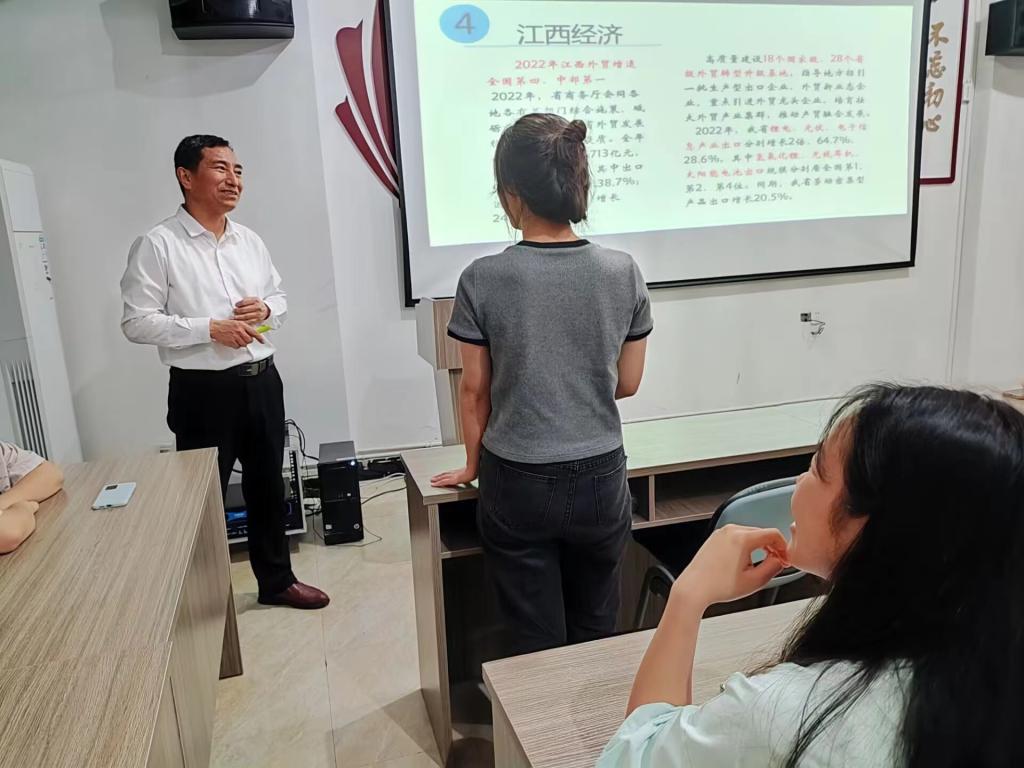 王老师首先带领大家学习了习近平总书记关于打造美丽中国“江西样板”的提出过程以及省委书记尹弘对于全面建设美丽江西的指示精神。接下来,他带领大家从江西的行政区划、江西地貌、江西旅游、江西经济等四个方面了解了江西,提出了很多问题,同学们也踊跃举手回答,现场气氛十分活跃。美丽的景区图片让大家身临其境,江西经济的快速发展让同学们倍感振奋,坚定了将来留赣就业创业的信心。讲座的第三部分是关于打造高品质美丽校园的讨论,王老师首先带领大家学习了省委书记尹弘关于提升生态环境质量的指示精神和公司党委书记邱晓辉关于创建文明校园的讲话,引发了同学们对于如何从自身做起,将我们学校打造成高品质美丽校园的思考。同学们畅所欲言,提出了很多真知灼见。最后,刘佳萍书记对今天的活动进行了总结,他高度肯定了此次活动的意义,赞许了同学们对建设美丽校园的回答,希望大家在日常生活做到“明”、“通”、“勤”,更好地融入美丽江西、美丽萍院。