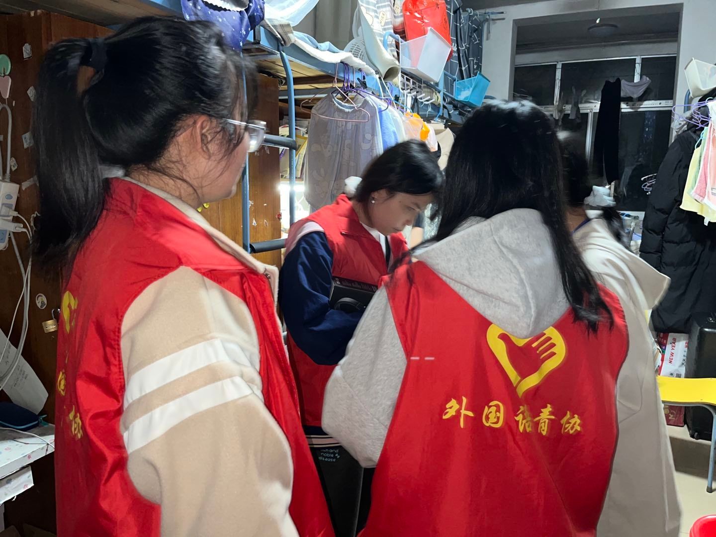 在一声声清脆的脚步声中,扫楼活动拉开了帷幕。只见一个个小红马甲们来到毕业生的宿舍门口,轻轻扣门,道明来意,礼貌询问学姐们是否有可以捐赠的图书或生活用品。在志愿者们的礼貌询问下,毕业生们热情的打开门欢迎小红马甲的到来,清点出闲置的生活用品和书籍包括但不限于中外名著和工具书,并对扫楼活动提出赞赏。志愿者们及时将捐赠的书籍和物品一一登记好,并将书籍搬到宿舍楼下交付到关工委图书循环用相关负责人的手中。至此,本次活动圆满结束。