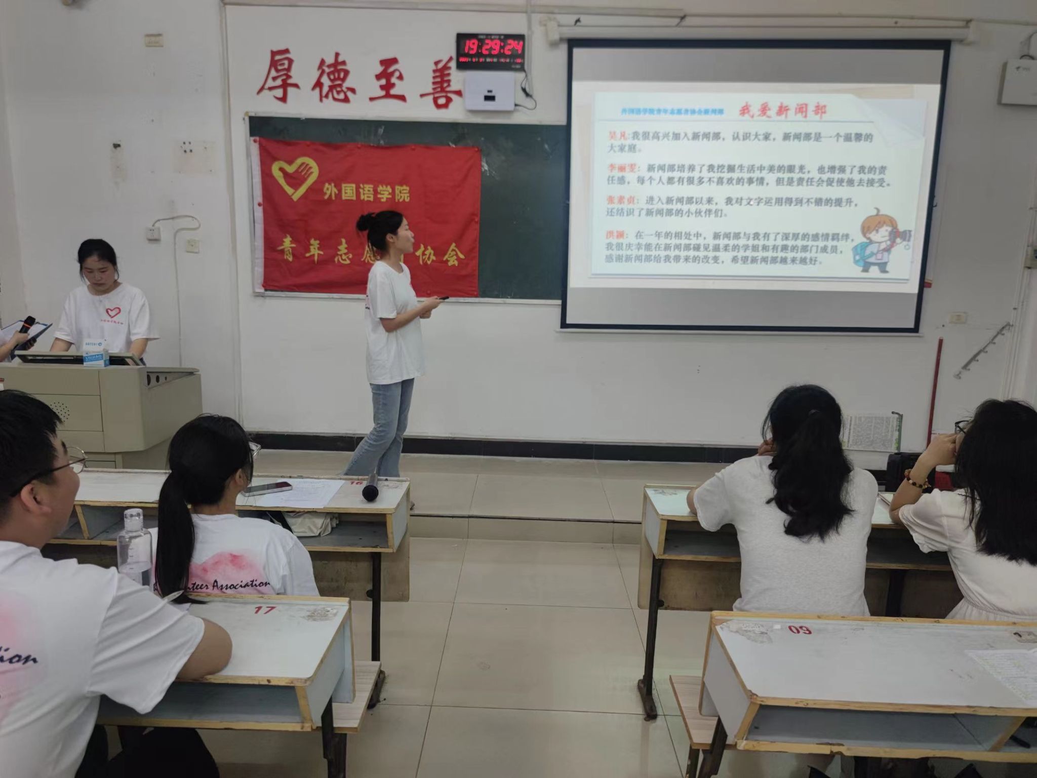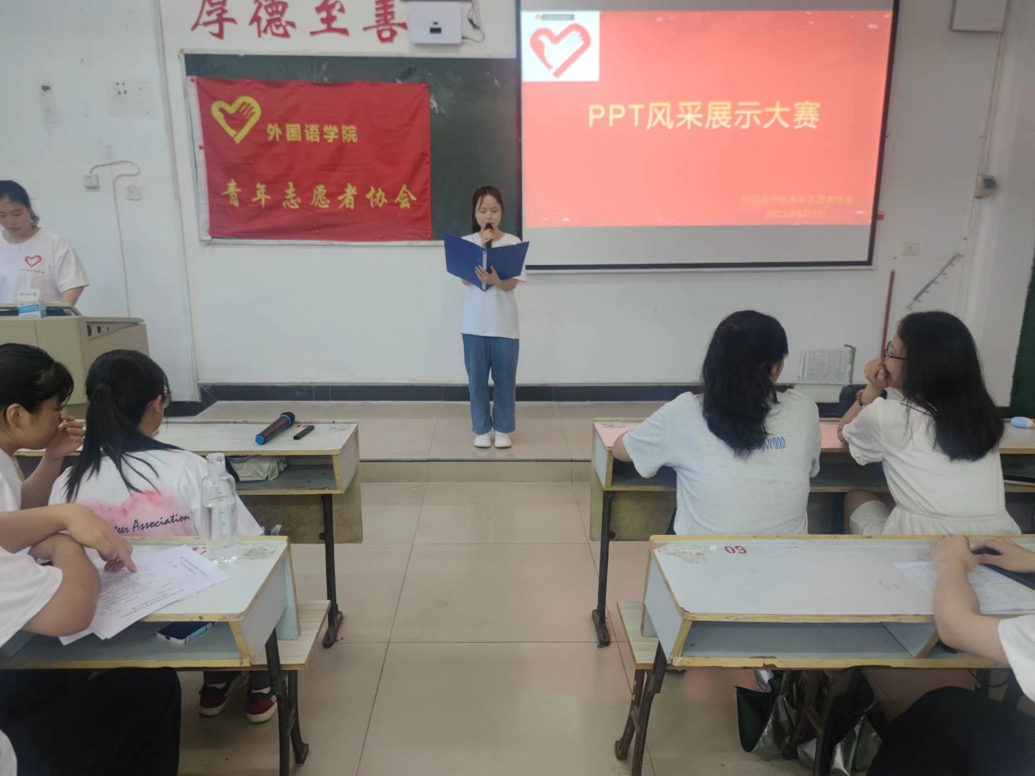 为了提高青协小伙伴们熟练运用PPT的水平和计算机操作能力,全面展示小伙伴们的团结友爱和奉献精神,beats365亚洲版官网青年志愿者协会于2023年6月8日晚7:00在英华楼3307教室举办了“PPT风采展示大赛”活动,参加此次活动的成员有21级理事会成员以及22级青协成员。