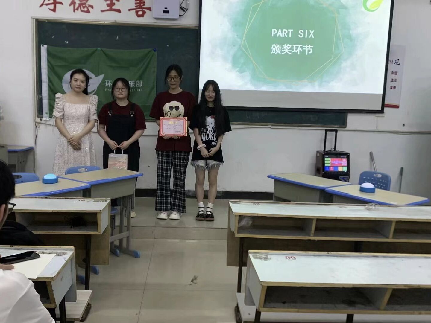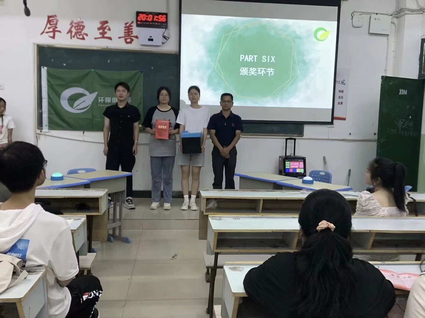活动初始,由环保俱乐部成员共同准备知识竞赛题库以及相应试卷,打印下发至参赛选手,及时并准确地通知选手们初赛笔试时间和地点,选手们拿到题库后,便对这场比赛经常了充足的准备。经过一轮初赛后筛选出分数较高的前六组队伍进入决赛。工作人员在决赛前也邀请了参加本次决赛的嘉宾,准备好主持稿以及PPT,按比赛流程依次进行开展活动。最后,对取得名次的队伍颁发奖状及精美礼品。工作⼈员总结比赛中的问题后,清扫现场卫生,本次活动到此圆满结束。