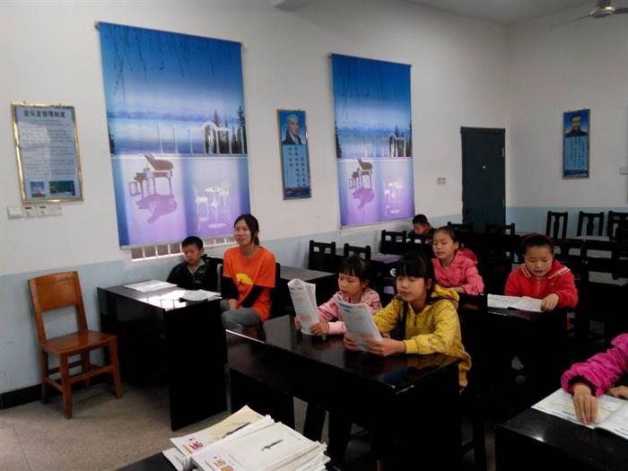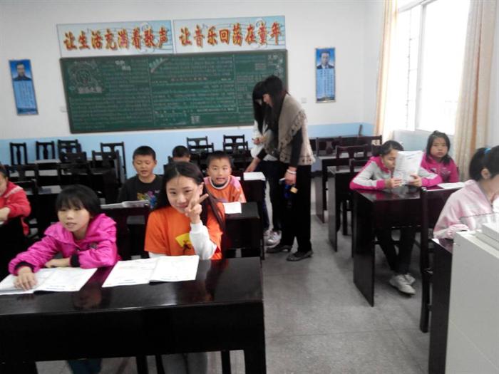 我们到达的时候,孩子们在操场上玩得很开心,也很投入。过了一会,上课时间到了。这次我们的志愿者教的是四年级写作,作文题目是《记一件有趣的事》。当小老师问到,看到“有趣”这个词时,会联想到了哪些类似的词语的时候,孩子们都很积极的回答。当孩子们开始写作的时候,小老师们总会在旁边给出一点提示信息。作文课结束后,由康玉婷教他们唱歌,在唱歌的过程中,这些小家伙们摇头晃脑,极其投入。他们用甜美的歌声唱出了自己心底深处的寂寞和期望。