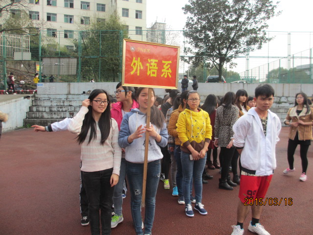 3月16日周一下午,久违的阳光照在红白相间的跑道上。外语系英本大一,大二,大三各个班都聚集在操场上,心情非常激动,热切地期待着阳光体育之行的开始!