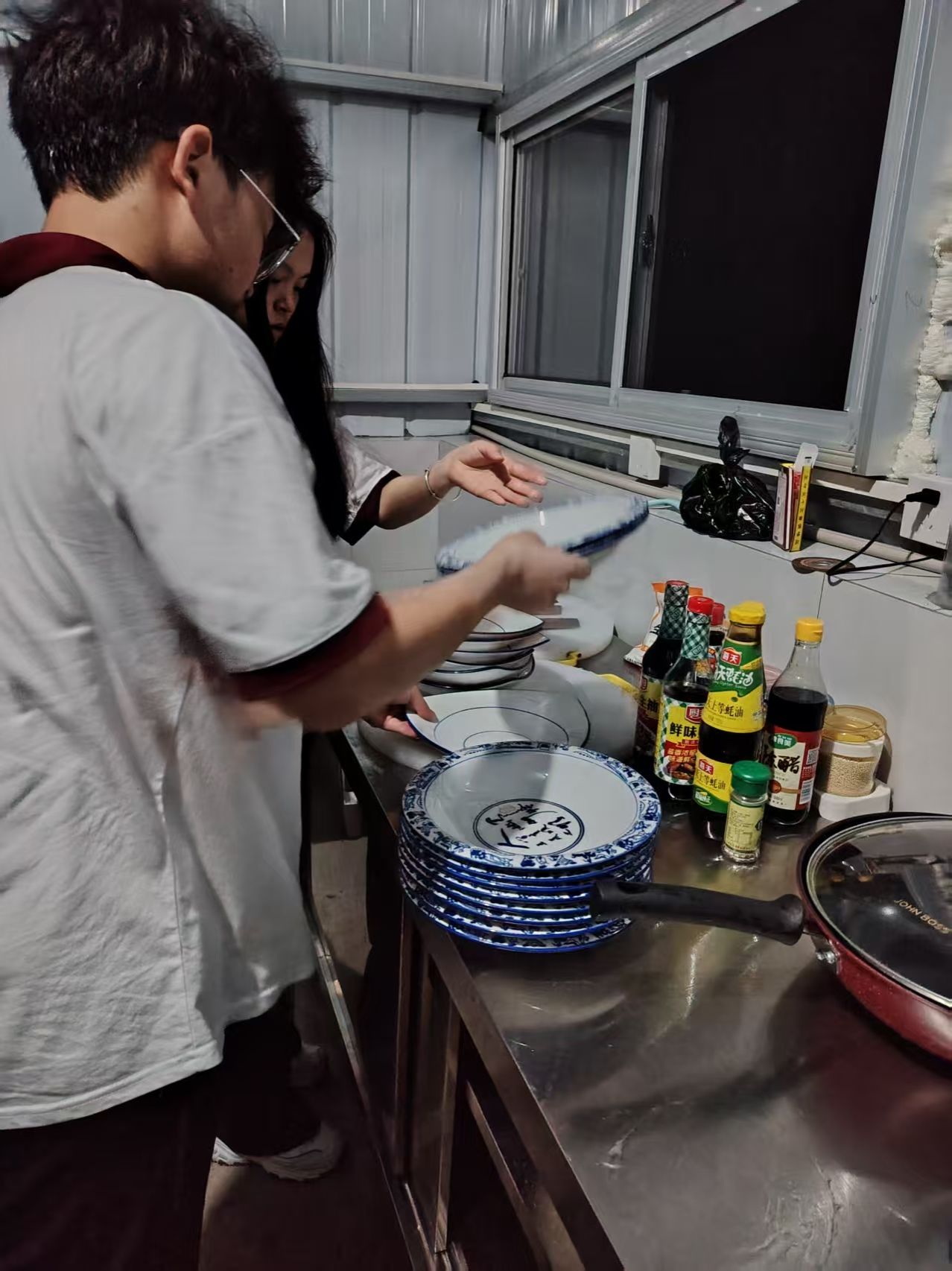 大雨倾盆中,“萍外星光”志愿服务团顺利抵达垭坞村。来不及抖落身上的雨水,志愿者们便迅速投入到安置工作中。搭床铺的队员们配合默契,有人精准拼接支架,有人熟练拧紧螺丝,金属部件在大家手中逐渐组合成稳固的床铺框架;清扫床铺的志愿者们分工明确,有人清扫地面、有人擦拭灶台、有人清洗厨具,面对顽固油渍,大家相互分享清洁妙招,或合力擦拭,或交替作业。在你来我往的协作中,床铺稳固成型,厨房窗明几净,厨具整齐归位,为后续实践筑牢温馨港湾。这忙碌的场景里,处处彰显着志愿者们团结互助的精神与踏实肯干的作风,他们用行动诠释着不惧辛劳、主动担当的品质拉开实践之旅的帷幕。