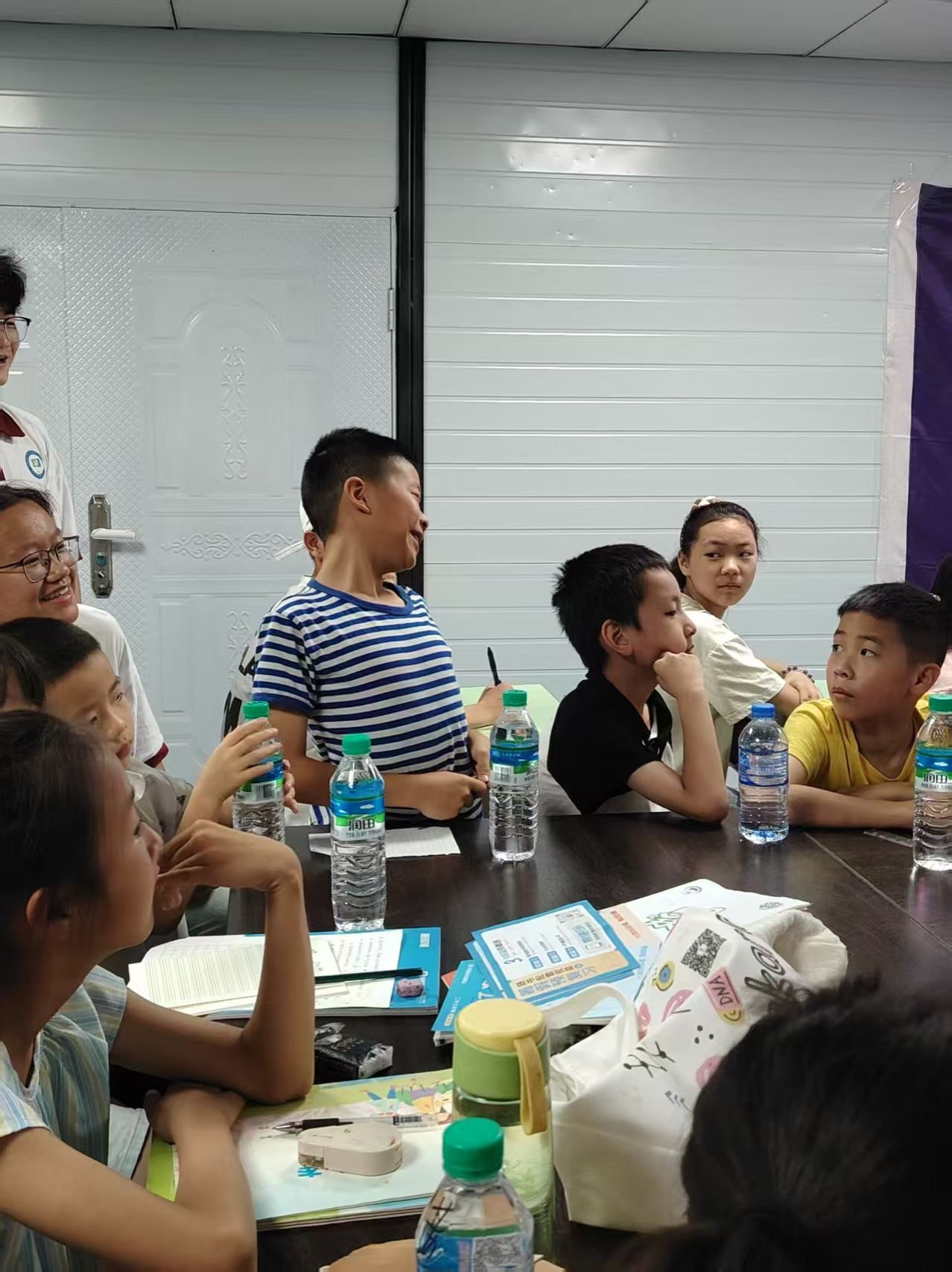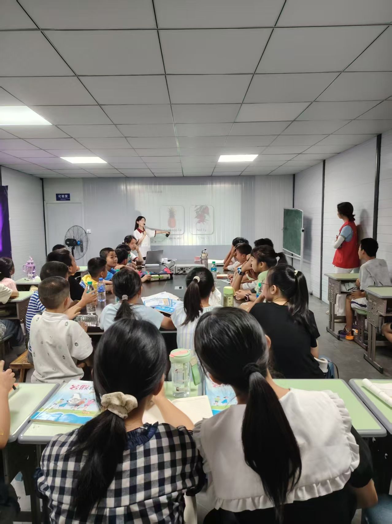 在支教课堂上,"萍外星光"志愿服务团用创意与热忱点亮知识之光。英语课上,志愿者们精心设计的PPT宛如一座趣味知识宝库,从简单的水果、人物身份单词起步,逐步引入人称代词,搭配朗朗上口的背诵口诀,将枯燥的语法规则变成了欢快的韵律。每当志愿者领读口诀,孩子们便跟着节奏齐声诵读,高举的小手如春日破土的幼苗,争着展示自己记住的语法要点。实验课上,非牛顿流体实验则成为探索科学的奇妙窗口。志愿者手把手指导孩子们调配淀粉与水,当混合物在掌心呈现出时而坚硬、时而柔软的神奇特性时,惊叹声与欢笑声此起彼伏,抽象的科学原理也化作了触手可及的趣味体验。