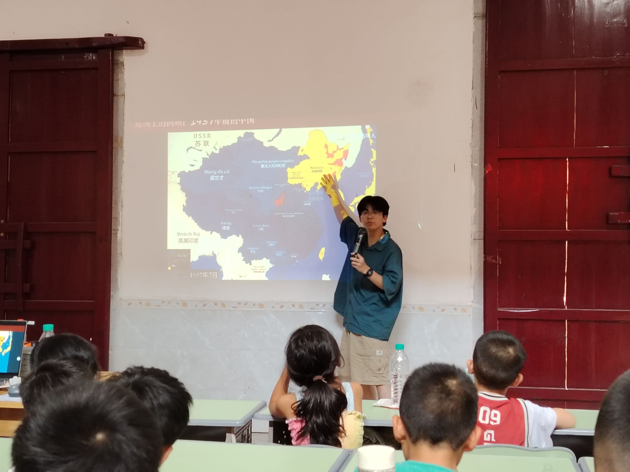 课程伊始,支教老师先向孩子们介绍了王耀南的故事。王耀南,这位从煤矿小英雄成长为将军的传奇人物,他的经历深深吸引了孩子们。从苦难的矿工生活,到坚定地走上革命道路,王耀南的每一步都充满了艰辛与勇气。随后,老师播放了《毛泽东来安源》等多个视频,让孩子们更加直观地感受那段波澜壮阔的历史。当画面中出现毛泽东等革命先辈深入矿工群体,宣传革命思想时,孩子们的眼神中充满了好奇与崇敬。在讲述过程中,老师提到了那句能够概括矿工们心声的话:“从前是牛马,现在要做人”,并详细阐述了这句话背后所蕴含的对自由、平等的渴望。老师还强调,在那个艰难的时代,矿工们之所以能够团结起来,为改变命运而抗争,正是因为他们懂得了团结的力量。接着,老师向孩子们讲述了7月7日这个特殊日子的意义,详细介绍了七七事变的历史背景、经过和影响。让孩子们明白,今天的和平生活来之不易,是无数革命先烈用鲜血和生命换来的。