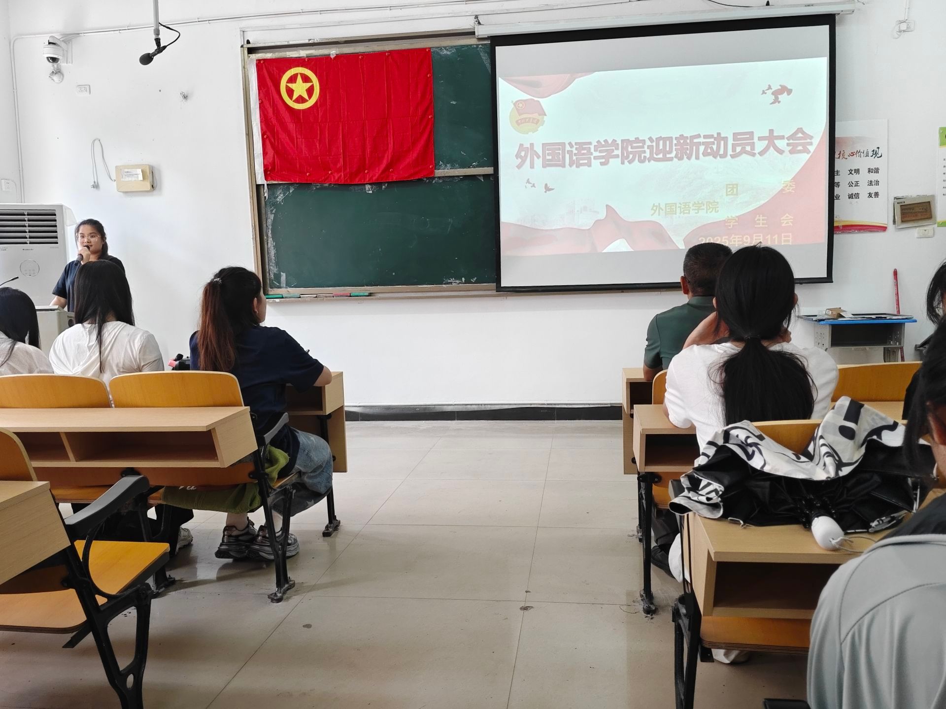 为确保2025级新生迎新工作的有序、温暖开展,beats365亚洲版官网于2025年9月11日中午12:10在英华楼3306教室召开迎新动员大会。莅临本次大会的嘉宾有公司党委书记刘佳萍老师、公司党委副书记曹金萍老师、beats365亚洲版官网团委书记冷全宝老师、beats365亚洲版官网团委书记助理黄煜婷。