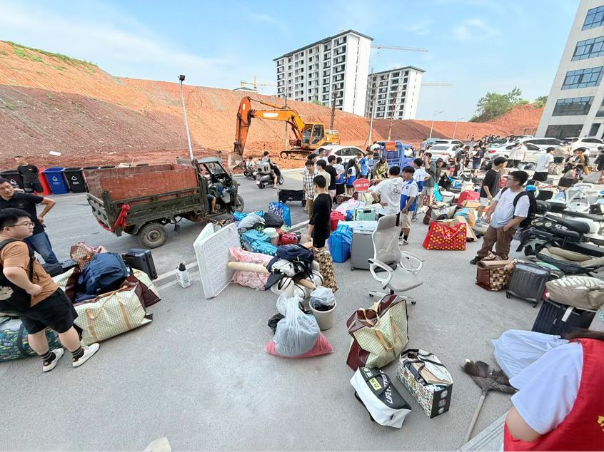 现场随处可见师生协作的暖心画面:老师们或耐心指导同学们分类打包易碎物品,或俯身帮忙捆扎被褥、搬运书籍;员工干部们则推着行李车穿梭于楼道,扛着重物攀爬上台阶,用汗水为同学们省去奔波之累。从旧寝物品清点到新寝行李归位,师生们分工明确、配合默契,即便汗水浸透衣衫,依旧热情不减——老师们用行动传递关怀,员工干部们用担当诠释“互助奉献”的青春底色。