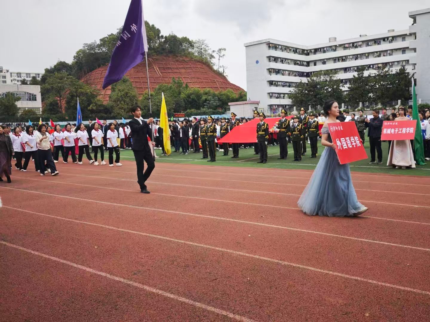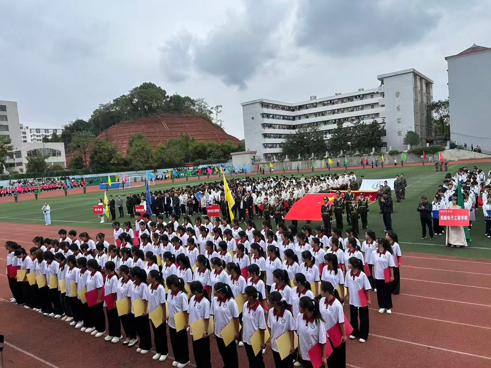 这场开幕式不仅是双运盛会的起点,更是学校精神风貌与文化内涵的集中展现。董事长的讲话为全体参与者注入了奋进动力,各院方阵的入场彰显了院系特色与集体凝聚力。这场运动会不仅点燃了赛事的激情,更让红色基因与青春活力深度融合,为全校师生搭建了凝聚情感、共筑校园文化的平台,也为接下来的赛事奠定了积极向上的基调,让拼搏、团结、爱国的精神在校园中生根发芽。