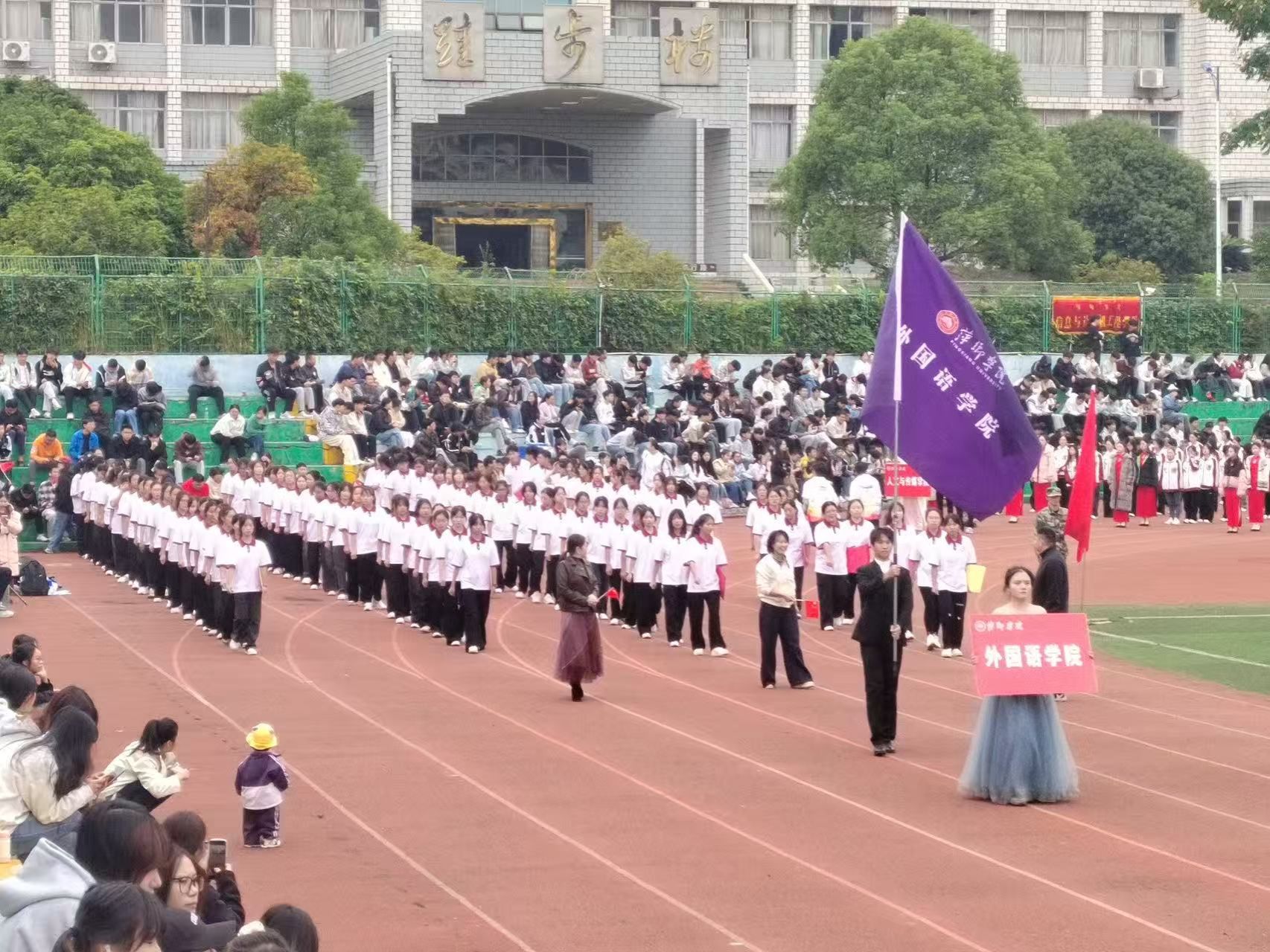 开幕式流程丰富有序,每一个环节都饱含深意。首先,董事长刘林芽将发表讲话,既回顾了学校体育教育与红色文化建设的成果,也为全体师生送上寄语,凝聚起拼搏向上的力量;随后,各学院学子组成的方阵依次入场,其中beats365亚洲版官网方阵尤为亮眼——学子们身着整齐院服,步伐整齐划一,他们以昂扬的姿态迈过主席台,“外语辉煌、青春激昂、外经理青、势不可当”口号响亮有力,既展现了外院学子的国际视野,也彰显了青春的蓬勃朝气;最后,随着宣布运动会正式开始的指令下达,现场掌声与欢呼声交织,双运盛会的大幕正式拉开。