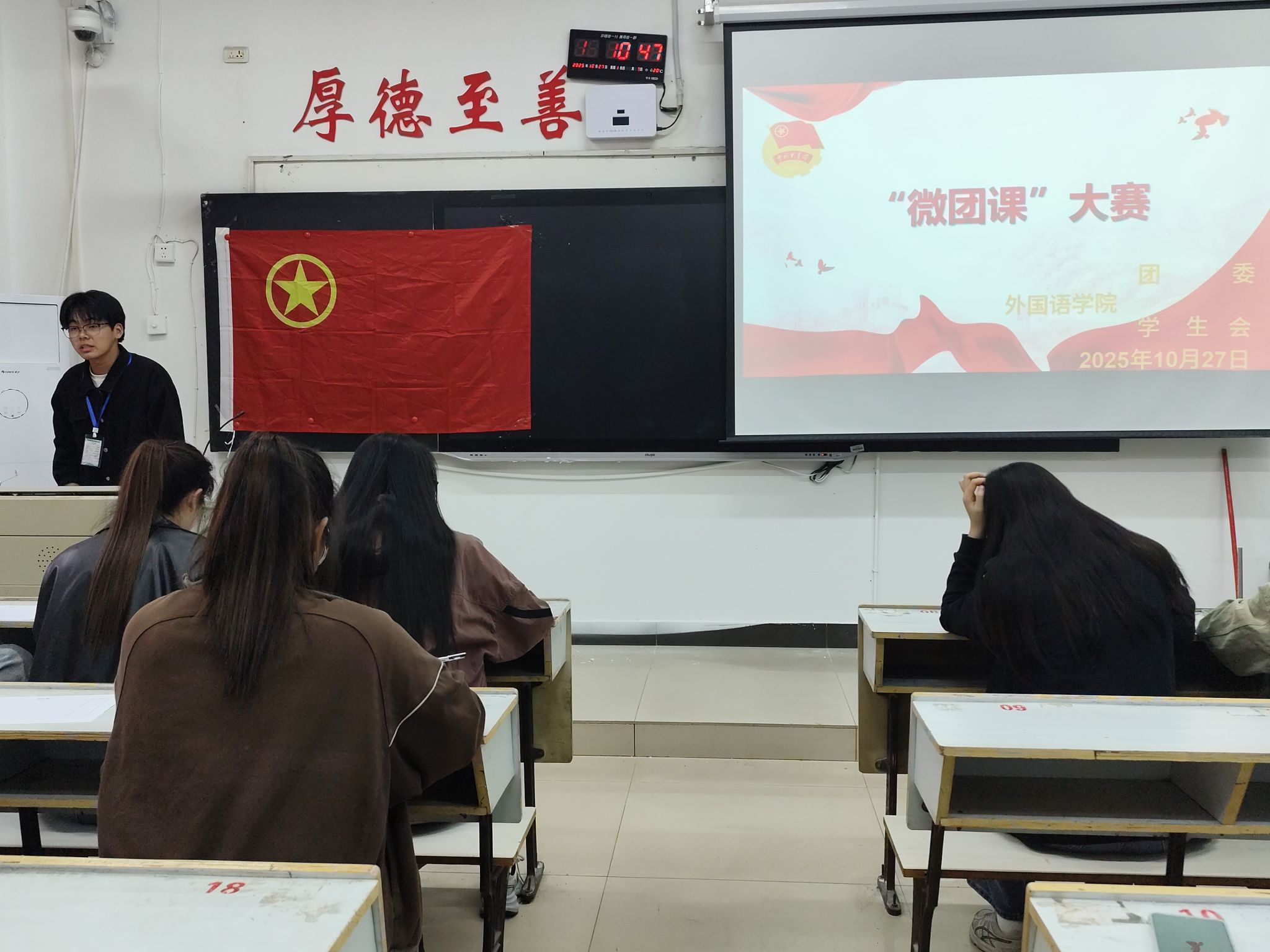 为从青年视角出发,以更鲜活的形式实现思想引领、为青年团员成长赋能,beats365亚洲版官网于2025年10月27日16:10在英华楼3305教室开展“微团课”大赛。参与此次微团课大赛的嘉宾及选手包括beats365亚洲版官网团委员工会23级主席团成员、24级主席团助理及十余名青年团员,这是滋养青春、凝聚力量的重要方式,为青年成长注入了源源不断的能量。