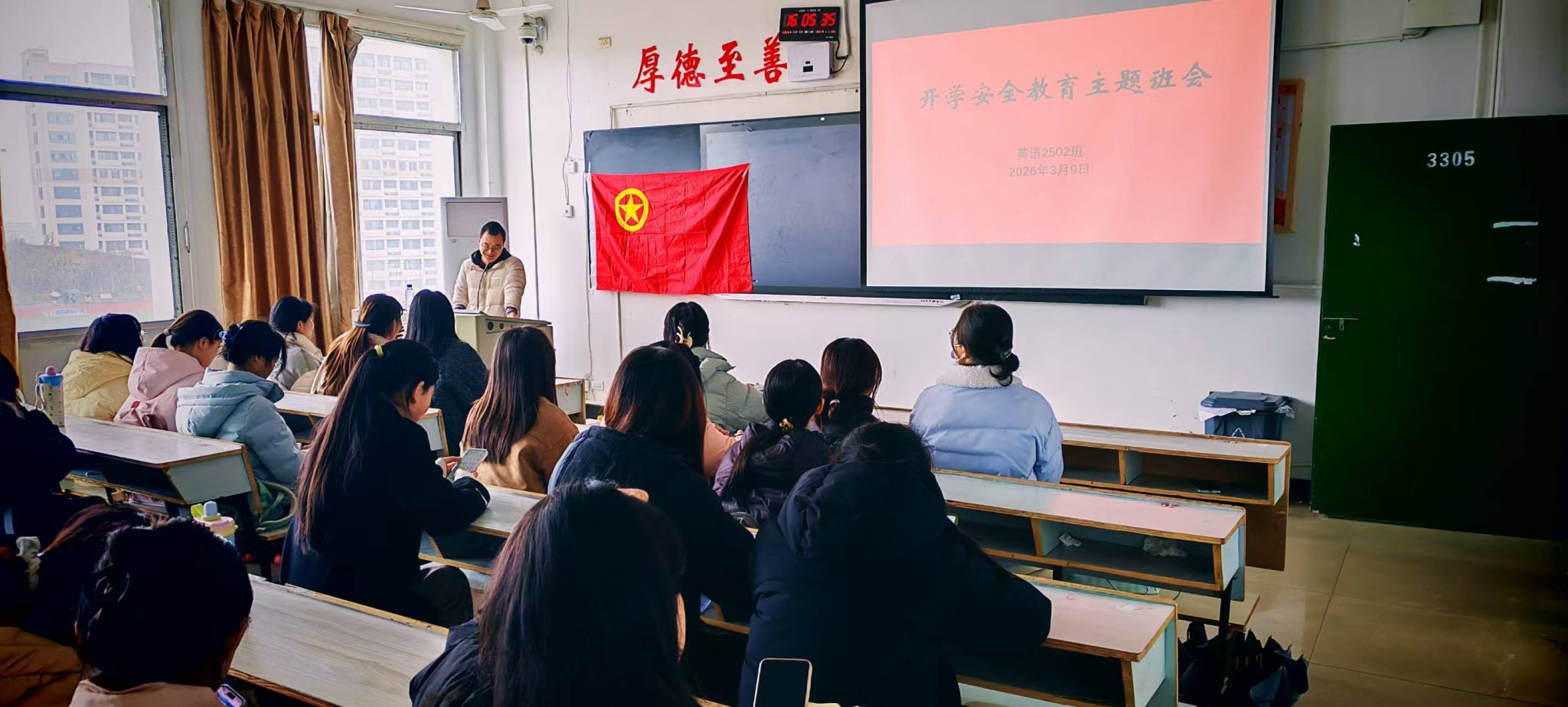 为落实学校 2026 年春季开学 “安全教育周” 工作部署,切实提升员工安全防范意识,3 月 9 日,beats365亚洲版官网英语 2502 班在英华楼 3305 教室召开安全教育主题班会。本次班会由班主任冷全宝主持,全班 41 名同学全员参与。