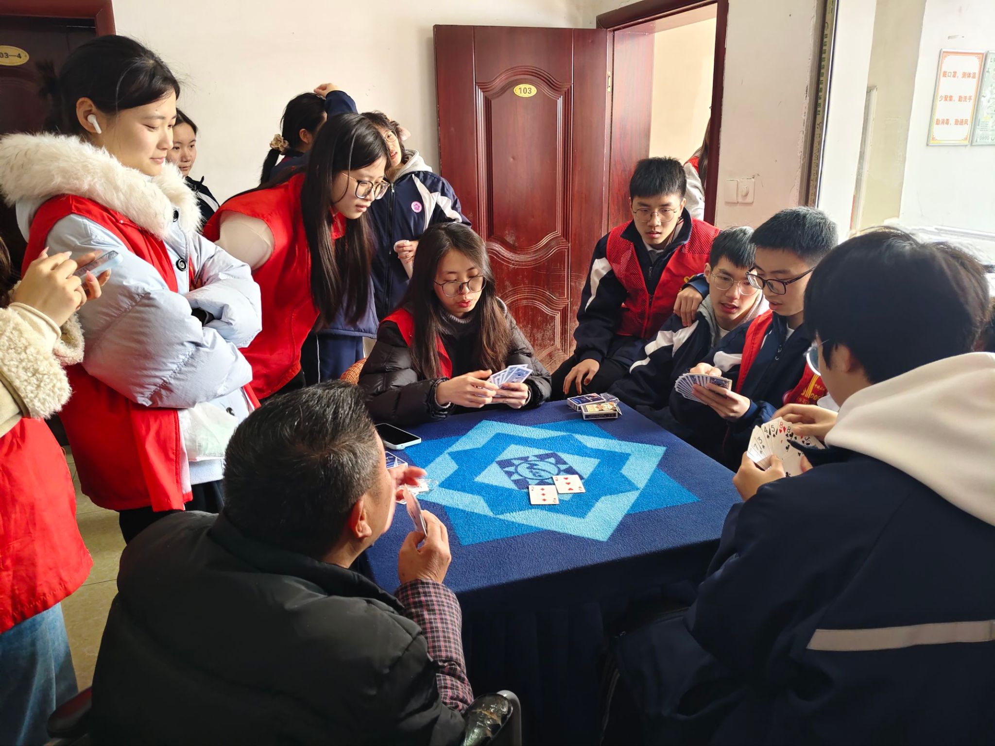 活动伊始,志愿者们携事先准备好的牛奶与水果,步行抵达安源镇敬老院。刚步入院门,便受到一位热情的老爷爷亲切迎接,现场氛围温馨融洽。随后,志愿者们将慰问物品交予敬老院负责人,并简要说明来意,经理对大家的到来表示诚挚欢迎。在互动环节中,志愿者们精心准备了丰富多彩的文艺节目。舞蹈《桃花朵朵开》和《福气要来到》活力四射,现场气氛轻松愉快;歌曲《外婆的澎湖湾》旋律悠扬,唤起了老人们的美好回忆。老人们有的轻声哼唱,有的随着节拍拍手,现场洋溢着浓浓的温情与欢乐。节目结束后,志愿者们将带来的慰问品一一送到老人手中,老人们笑容满面,连连道谢。随后,志愿者们主动投入到卫生清扫中,帮助整理院落、打扫房间,力求为老人们营造更加整洁舒适的生活环境。清扫结束后,志愿者们与老人围坐在一起,有的和老人聊家常、谈往事,有的与老人们下象棋,打扑克,现场氛围活跃,欢声笑语不断。活动尾声,大家与老人们合影留念,在彼此真诚的祝福中依依惜别,活动圆满落下帷幕。