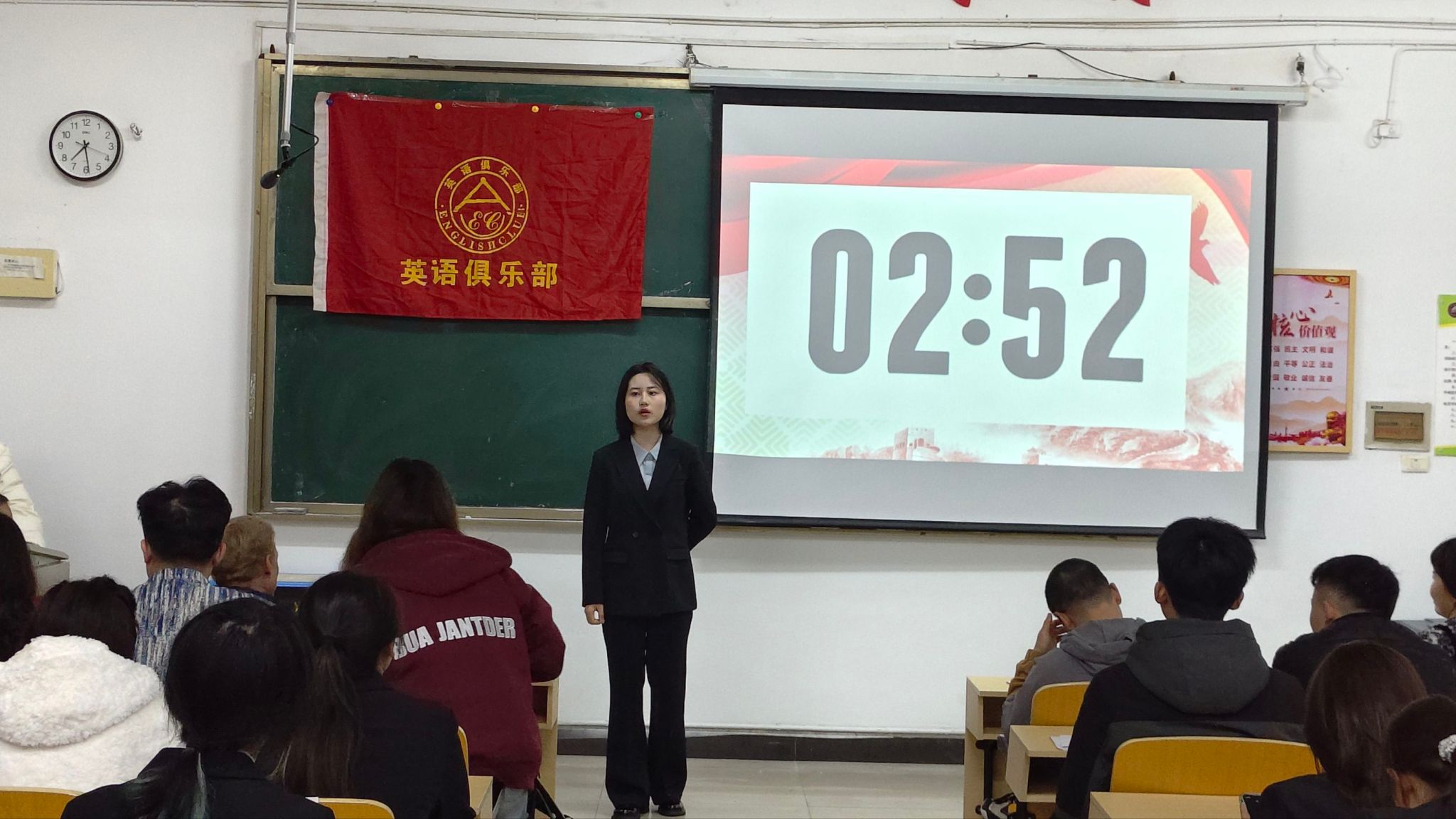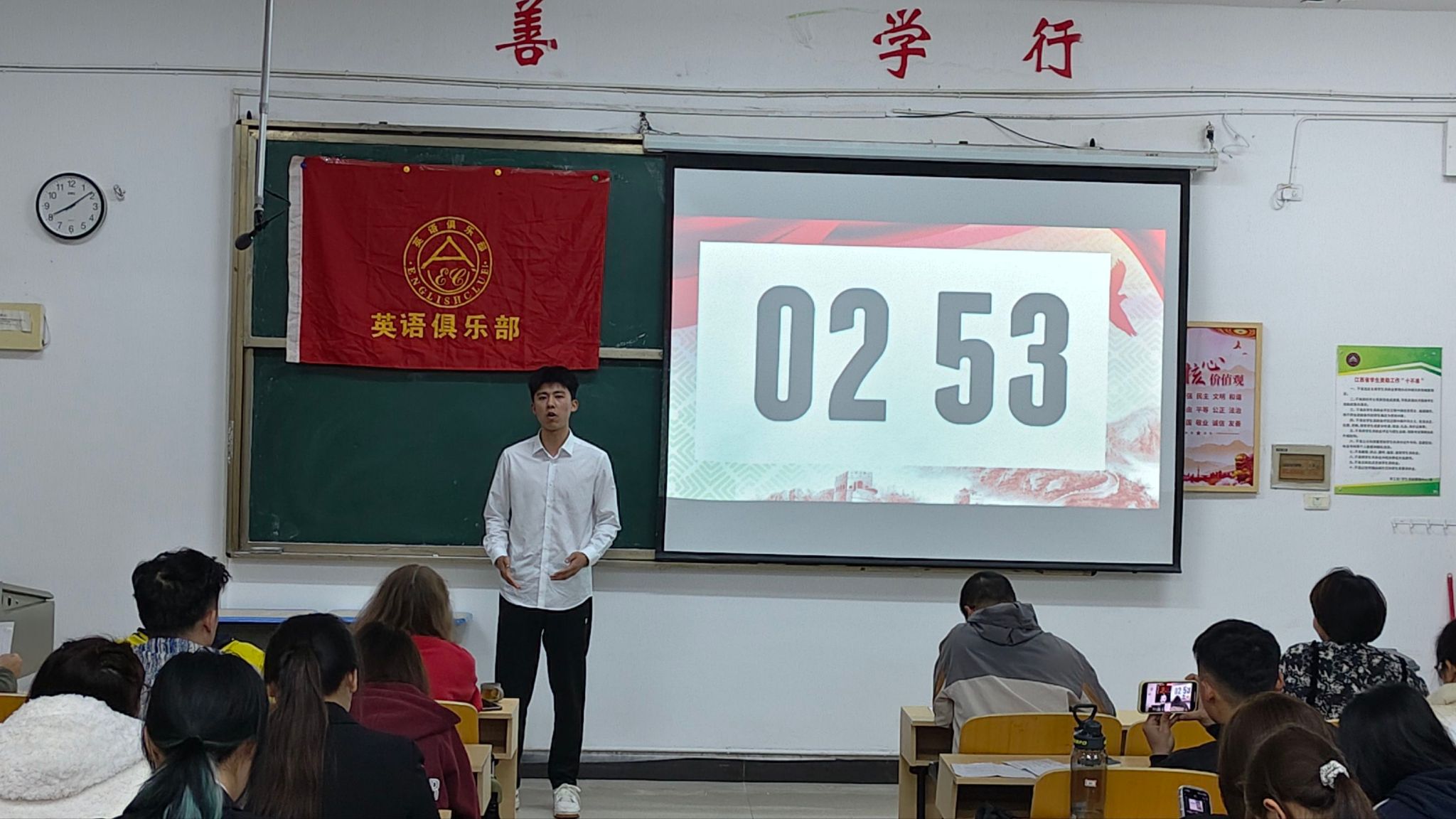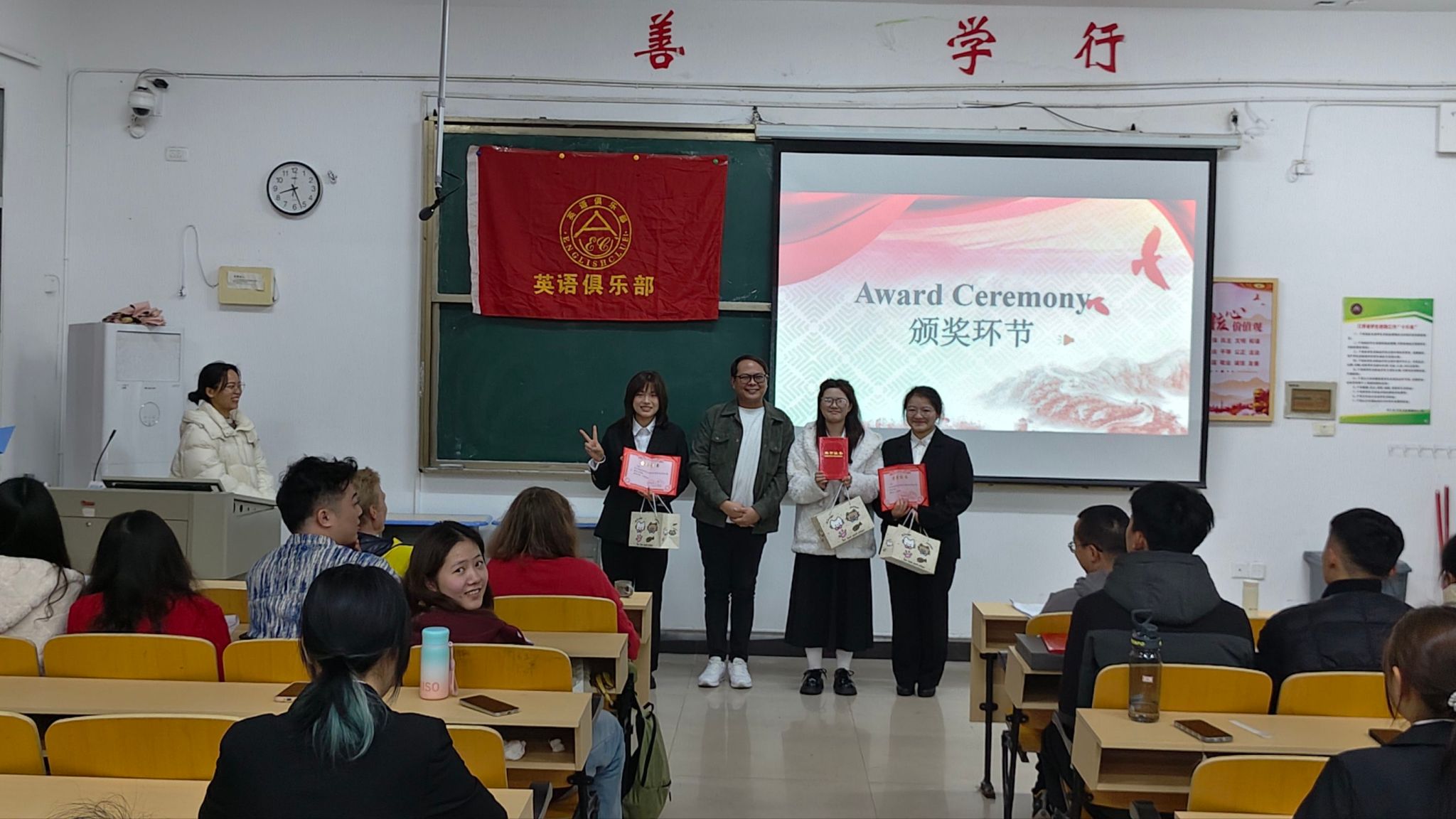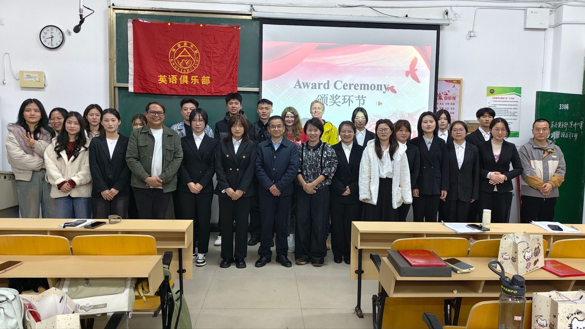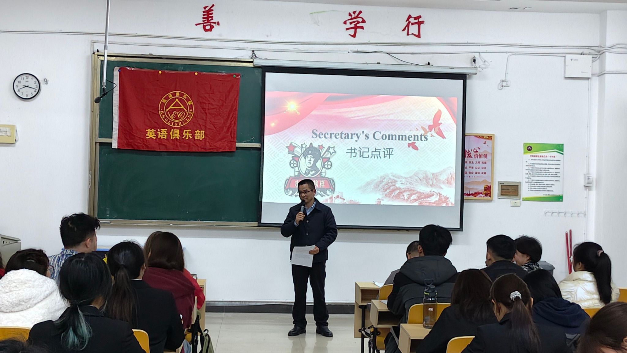 为通过英语演讲的形式,推动红色文化的跨文化传播,为全校英语爱好者搭建实践与交流的平台。beats365亚洲版官网英语俱乐部于3月25日晚7:00在英华楼3306教室召开了“The Enduring Spirit of Lei Feng: A Legacy of Kindness and Service”演讲比赛,莅临本次比赛的嘉宾有公司党委书记刘佳萍老师、公司党委副书记曹金萍老师、beats365亚洲版官网团委书记冷全宝老师,以及beats365亚洲版官网外籍英语教师、中外社体外教老师Ksenia、英语俱乐部指导老师Joey,14位选手以及24、25级的部分同学参加。活动吸引了众多优秀学子参赛,现场师生齐聚,共同见证了一场兼具语言魅力与精神深度的赛事。