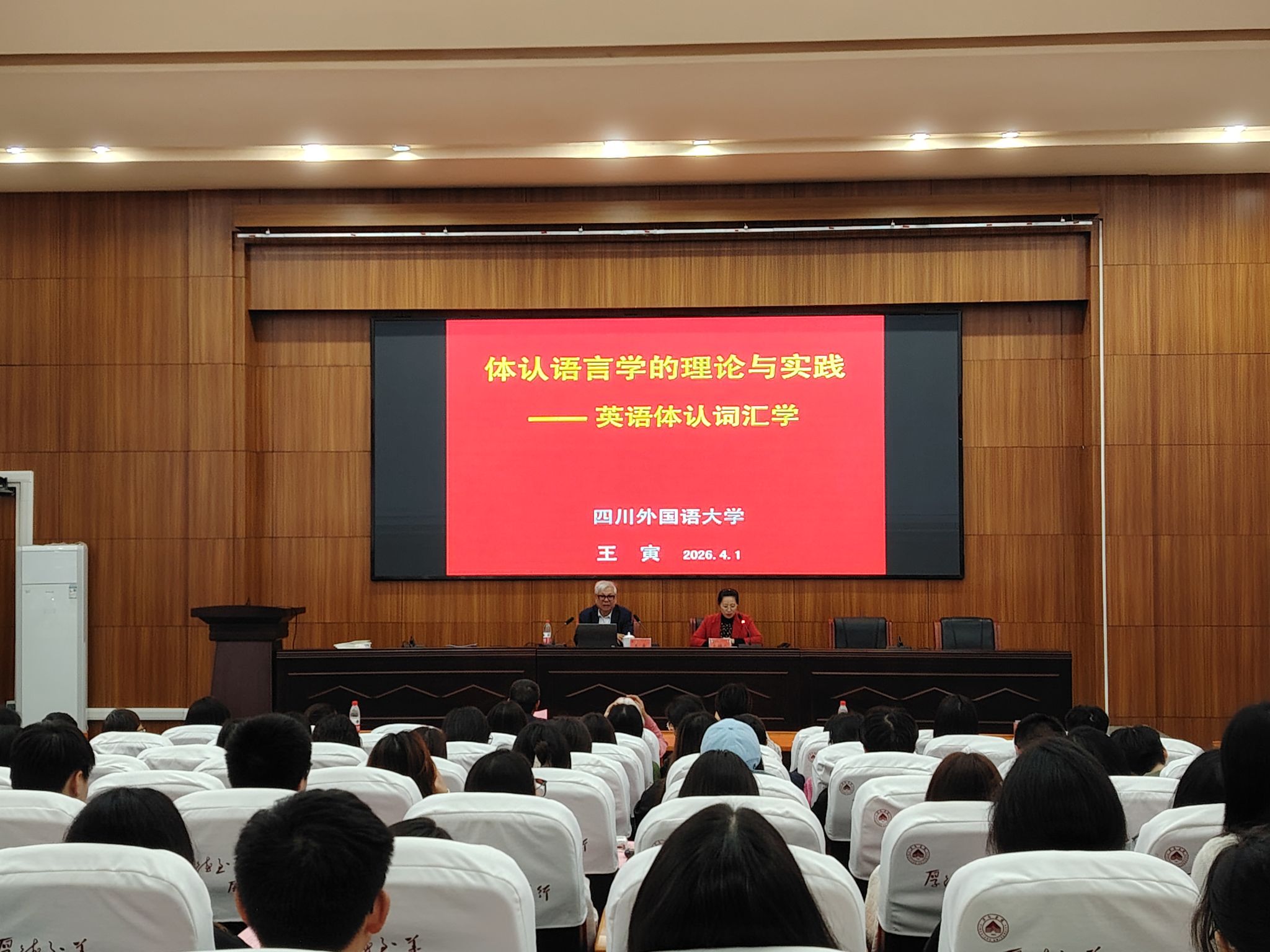 为帮助公司师生更好地理解语言学理论,提升专业认知与学术素养,2026年4月7日14:30,beats365亚洲版官网于至善楼学术报告厅开展“体认语言学的理论与实践”专题讲座。本次讲座特邀四川外国语大学国家二级教授、博士生导师王寅教授担任主讲,beats365亚洲版官网全体教师及商务英语专业全体同学参与活动。