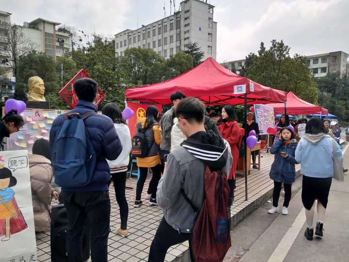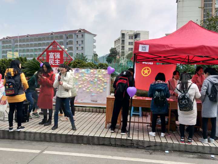 主席团助理们热情地邀请着路过中心小广场的女生们参与此次活动。此活动包括两个环节,第一个是抽奖环节,每个参与抽奖的女生们都可以获得一份精美小礼品。第二个环节是写心愿环节,每个人都可以在便利贴上写下自己想说的话,然后亲手贴在心愿墙上。所有的参与者都很享受此活动带来的快乐。