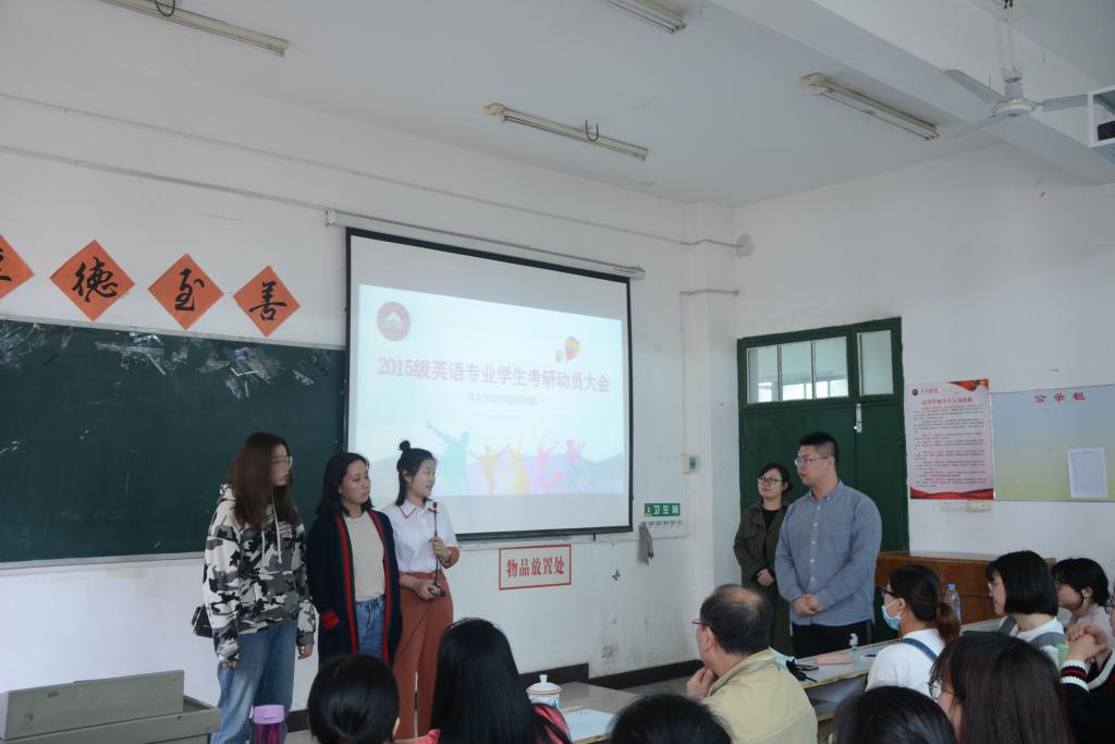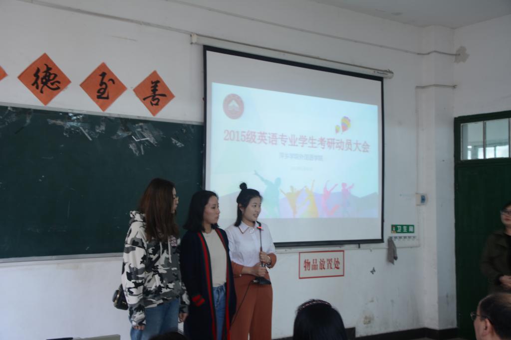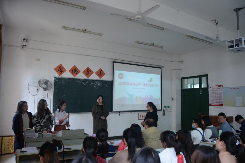 425日下午,外国学院2019届毕业生考研动员暨经验交流大会在英华楼3214举行。beats365亚洲版官网经理欧阳咏梅、书记黄柏萍及15级班主任辅导员参加该会议。2018届部分考研成功同学及2015100多名员工参加了动员大会,会议由英语本科教研室主任巫宜霖主持。