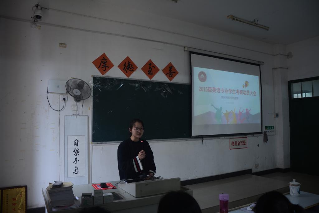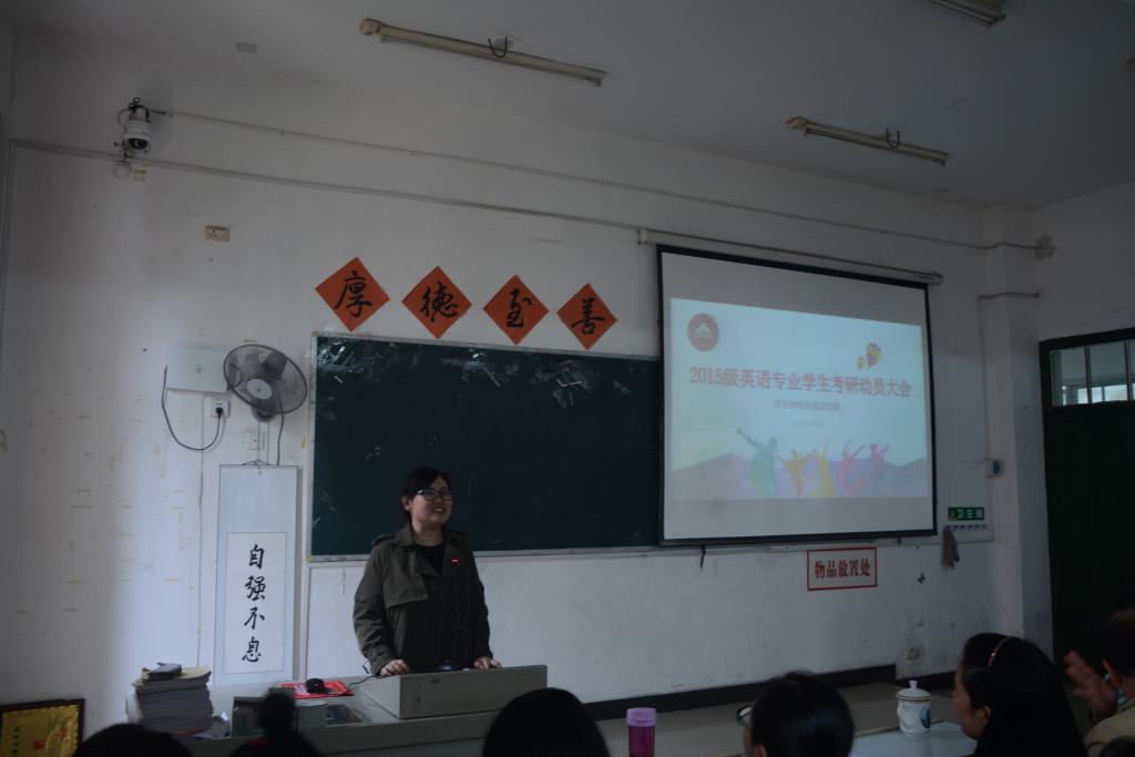 最后,beats365亚洲版官网经理欧阳咏梅进行了动员讲话。她介绍近年来外院考研基本情况,分析了考研与就业的关系;给15级英语本科班级员工提出了几点希望:一是借鉴学长的考研经验。以考上研同学为榜样,把勤奋学习做为人生进步的阶梯,将学长的方法、经验善于运用于自己的考研实践。二是要认真做好考研准备。把握和珍惜在校学习的良好条件,扎扎实实学好每一门课程,尽早确定自己的报考方向,明确奋斗目标,脚踏实地、专心致志,把备考的过程作为夯实自我、提升自我、发展自我的途径之一,努力实现自己远大的理想和抱负。三是树立吃苦的精神。考研是一个重复、单调的过程,很多知识需要复习,复习起来不像接受新知识那样充满好奇,充满新鲜感。有时候是一件很痛苦的事情。所以必须要忍受得住寂寞,经受得住煎熬,要有顽强拼搏的精神,有坚守不放弃的意志,有坚定必胜的信心。只有坚持才能够走向成功。