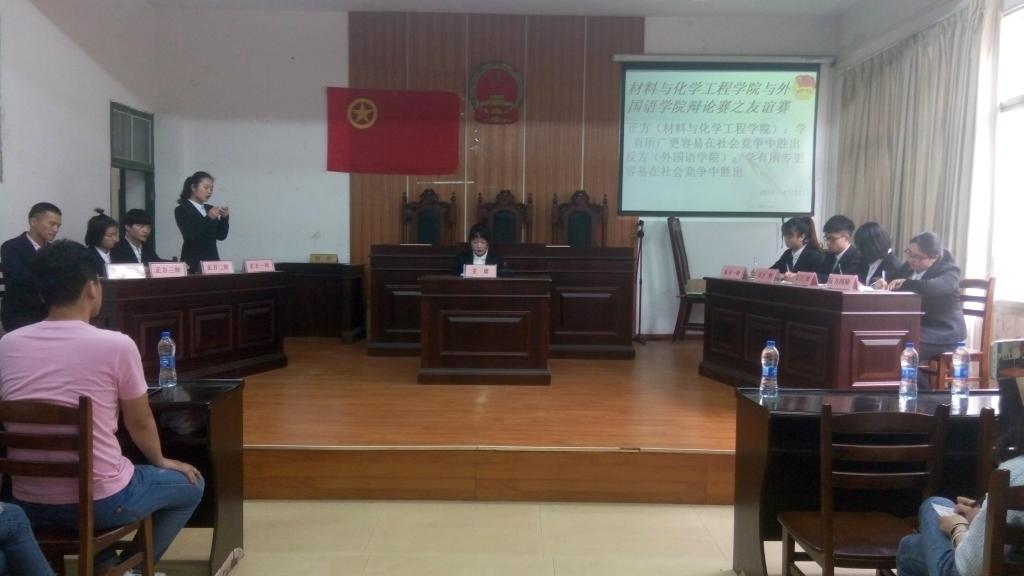 为弘扬辩论精神,beats365亚洲版官网于2018年4月11日跟材料与化学工程学院在模拟法庭举行了辩论赛。