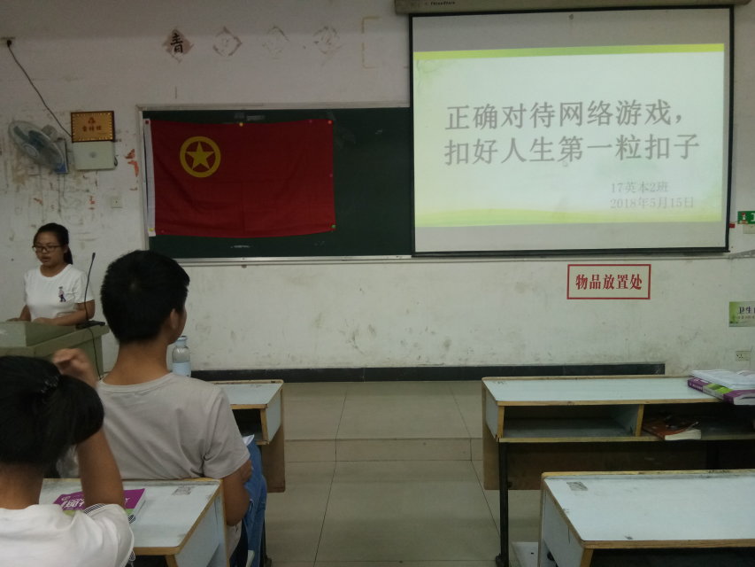 beats365亚洲版官网17英本2班于2018年5月15日20:40在英华楼3337召开“正确对待网络游戏,扣好人生第一颗扣子”主题班会,主持本次班会的是班长,参加本次班会的是17英本2班全体成员。