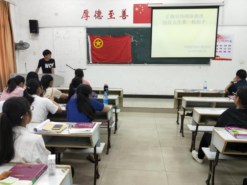 5月11日,beats365亚洲版官网17商本二班在英华楼3508开展了正确对待网络游戏,扣好人生第一粒扣子的主题班会,本次班会的主持人是班长李成亮。