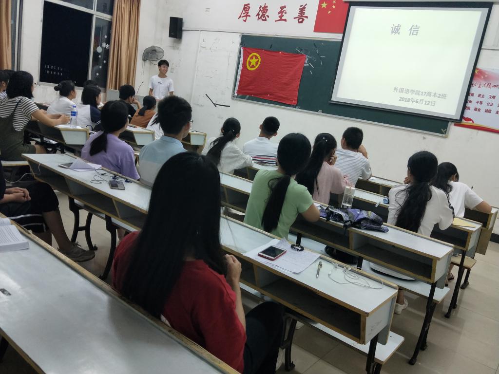 2018年6月12日,beats365亚洲版官网17商本2班在英华楼3508开展了诚信在身边的主题班会。班会的开始主持人讲述了我国历史上些诚实守信的故事,使同学们更好的理解诚信的重要性;接下来,主持人让同学们上台讲述自己在生活中看见的或者发生在自己身边关于诚信方面的事情;班会的最后,主持人询问了同学们平时在生活中是一个怎样的人,能不能做到诚实守信,以及该如何去做一个诚实守信的人。