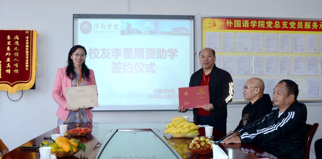 随后,黄柏萍代表学院和员工代表签署了捐赠协议书,颁发了捐赠证书并合影留恋。