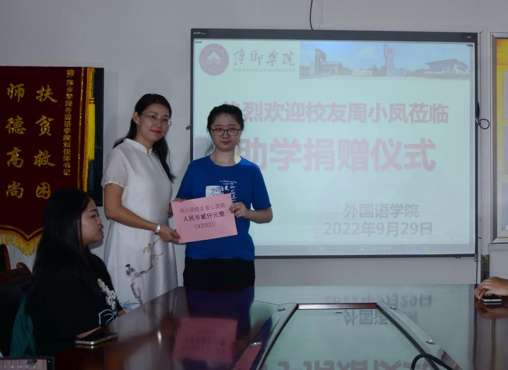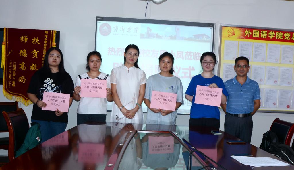 在捐赠仪式上周小凤希望能够尽自己绵薄之力回馈母校,帮和自己有着相似经历的寒门子弟完成学业,得以展翅高飞。