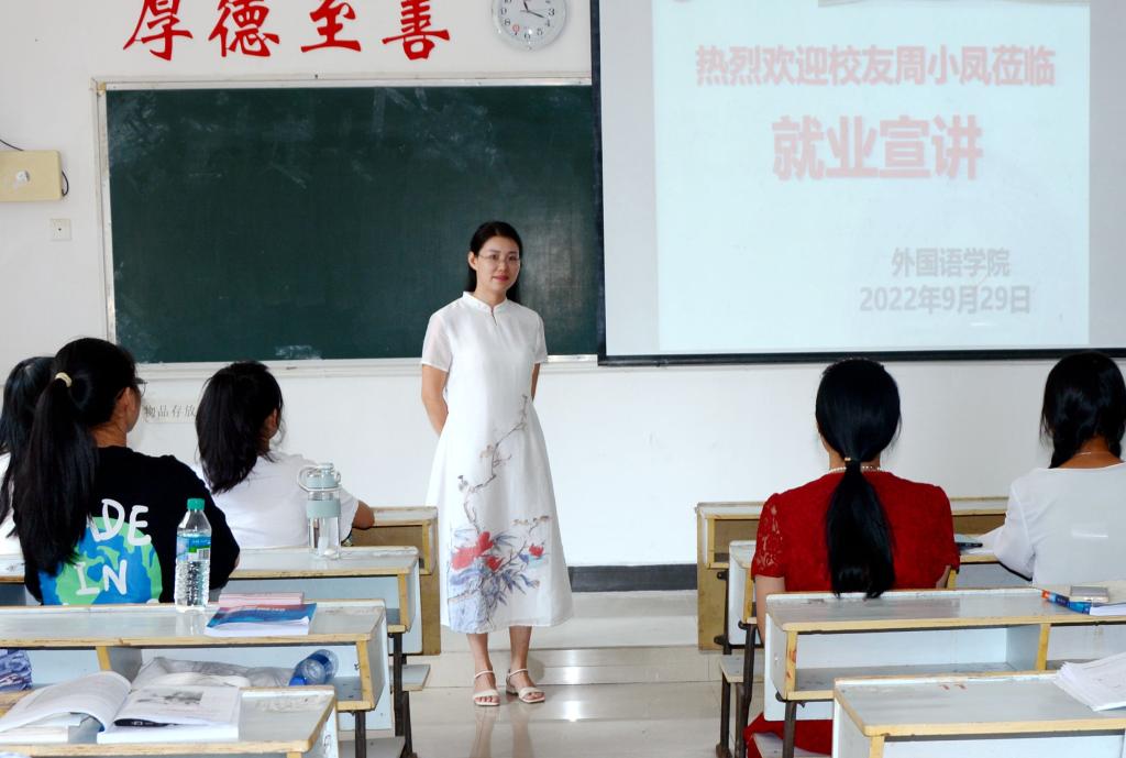 活动结束之后周小凤员工还走进班级为在校学弟学妹们讲述了自己的学习工作感悟以及就业创业历程。