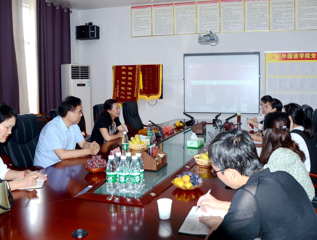 会上,各教研室就教学科研、人才培养方案、信息化教学等方面与邹教授做了深度交流,并就如何提高教学效果、提升科研等方面展开了座谈,分享了经验和心得。邹教授详细查看了《英语专业人才培养方案》,就英语专任人才培养提出了宝贵的建议。